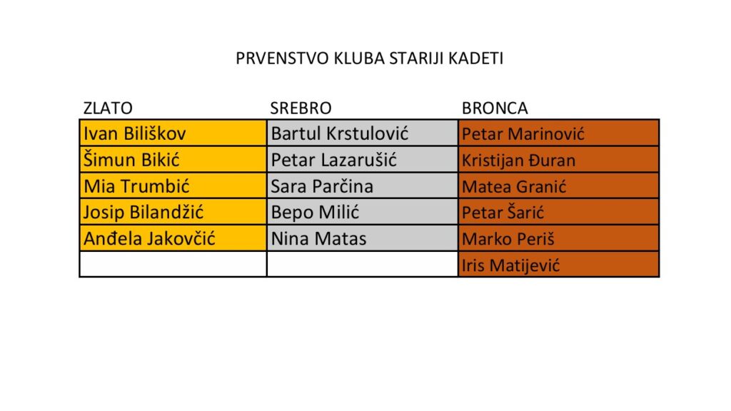 U olimpijskom centru na Lokvama u nedjelju 8.6.2025. održalo se prvenstvo kluba za starije kadete bez